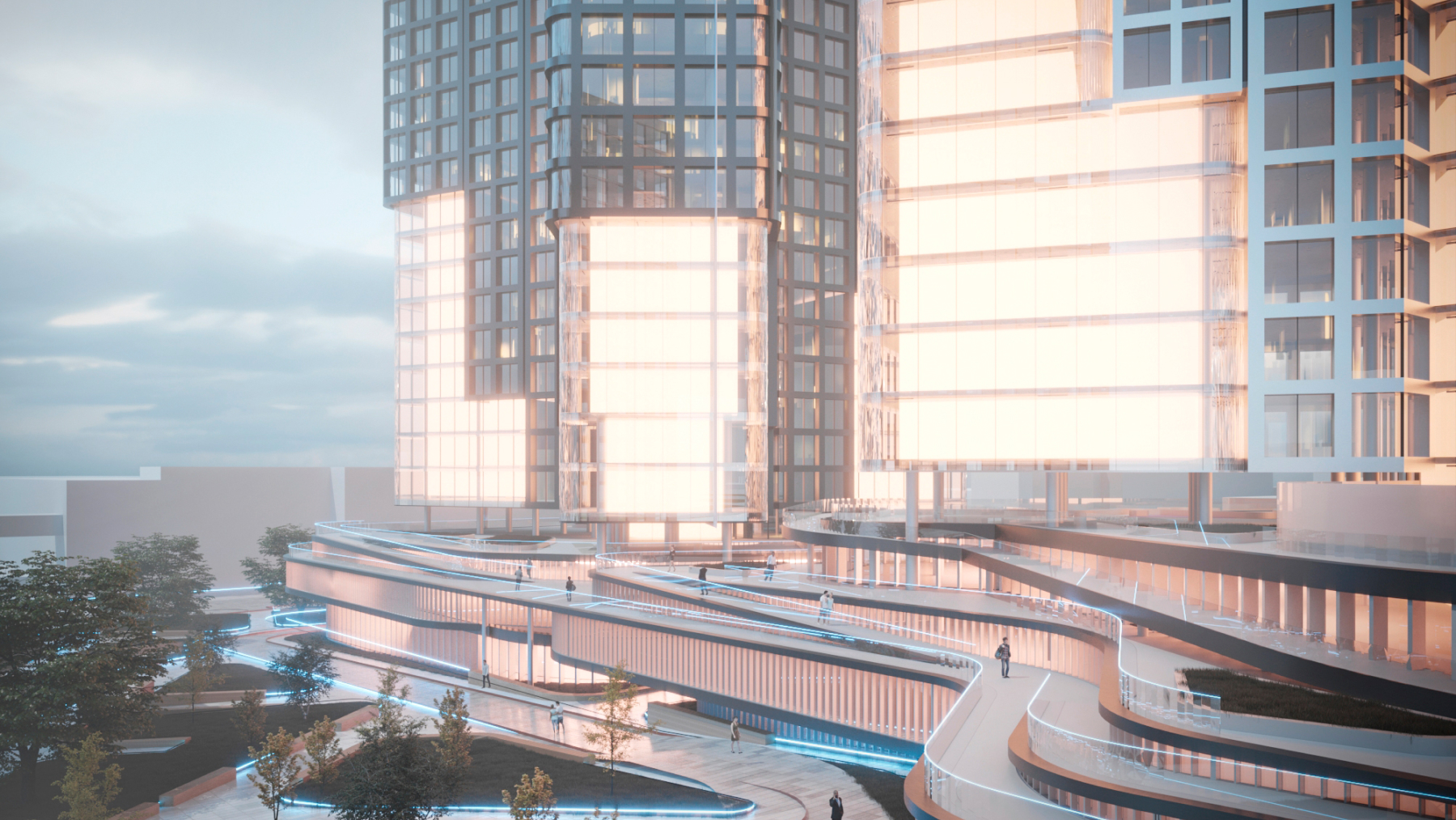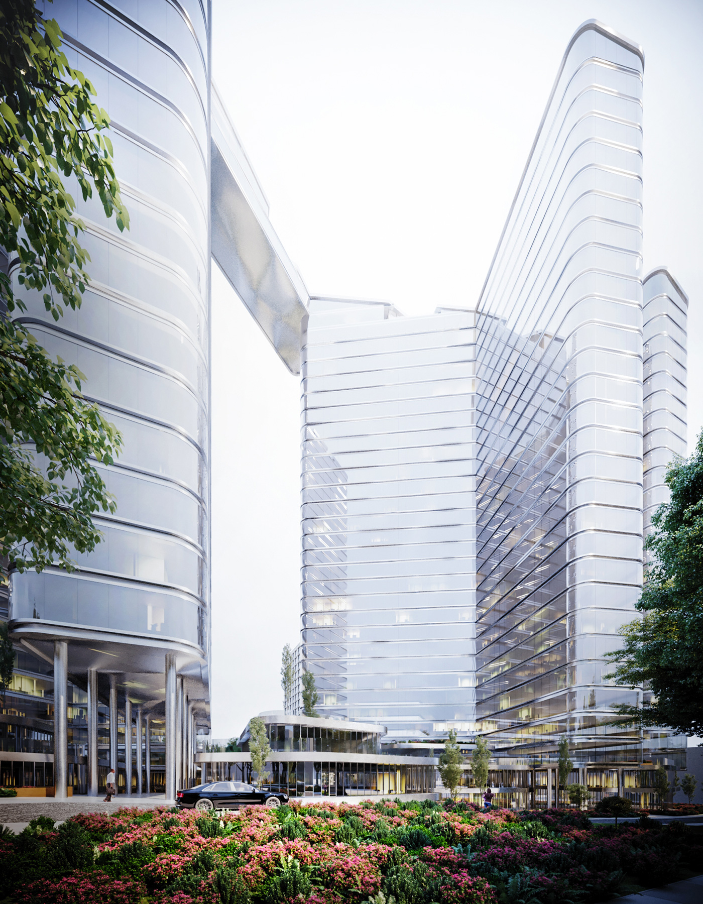 Концептуальная основа берет свое начало в теме пересечения городских потоков. Здание является акцентирующей доминантой, подчеркивающей перекресток городских магистралей. Формообразование корпусов продолжает данный морфологический принцип, проявляясь в изолированных жилых блоках квартир, пересекающихся в центре — коммуникационном ядре.