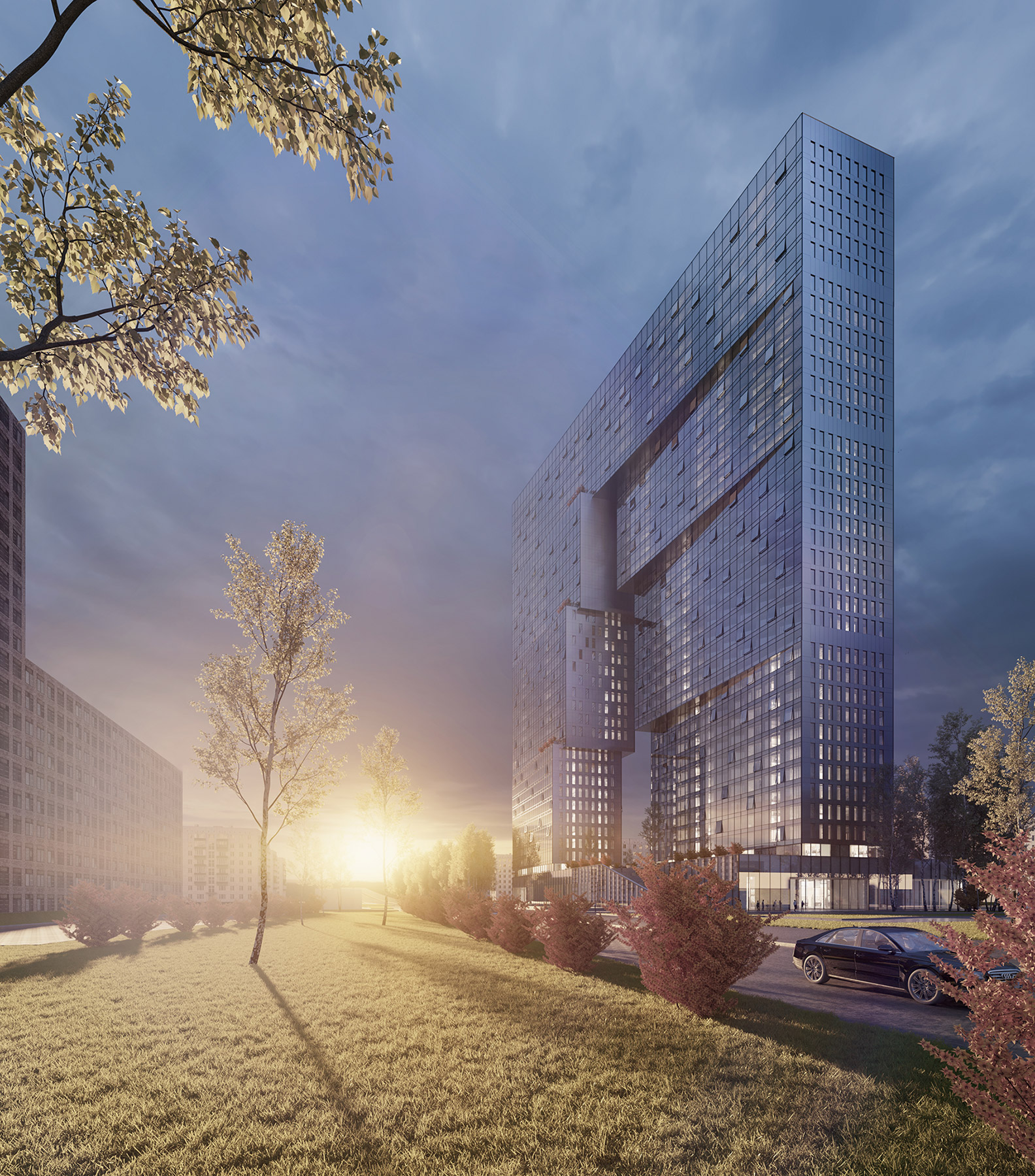 Отправной точкой при проектировании комплекса стало создание «массы в динамике» — большого, но при этом живого объема. Силуэт отсылает к типологии семи московских высоток, и, как реплика символа, становится символом сам по себе.
